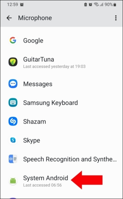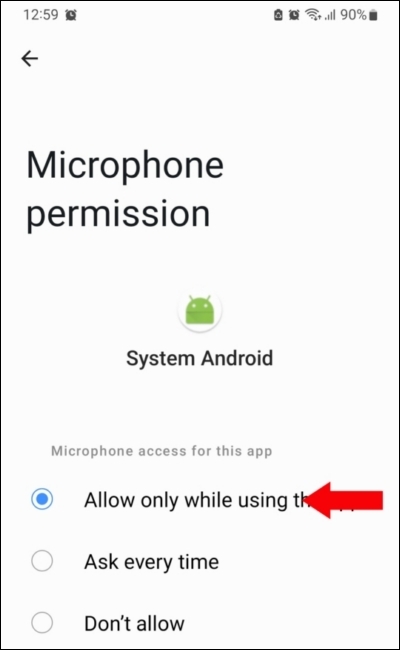 On the next window, find the System Android application. Allow using the microphone for System Android.