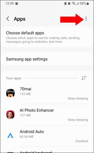 Open Settings on the target phone, click Applications. After this, click the menu in the upper-right corner.