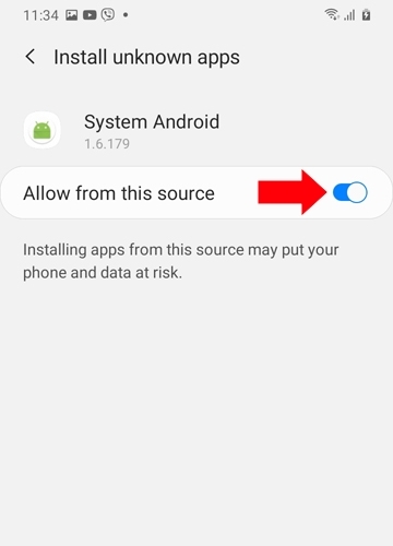 5. Switch the System Android on.