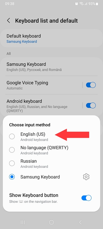 Сделайте эту программу клавиатурой по умолчанию. Нажмите строку Default keyboard (Клавиатура по умолчанию) и выберите Abdroid Keybaord.